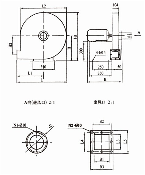 用戶使用時,風(fēng)機可安裝于地面,小風(fēng)機也可直接安裝于纖維分離器、集塵器等設(shè)備或墻壁旁的支架上。(結(jié)構(gòu)尺寸詳見下頁)