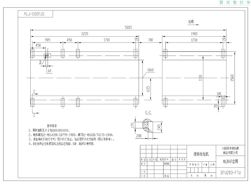 1.3 本機(jī)可與抓棉機(jī)、打包機(jī)及濾塵器等設(shè)備配套組成廢棉處理系統(tǒng)。