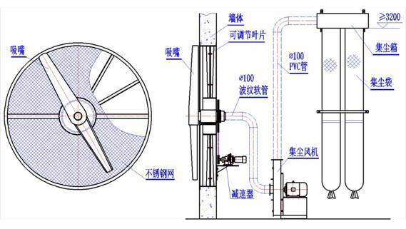 Smooth inside of dust-collecting pipes, less bends. Dust collection fan should be assembled firmly, no displacement caused by vibration, smooth air flow of outer and inlet suction. Dust Box should be assembled firmly, height of the box bottom should be no less than 3200mm, smooth air flow of dust collection room.